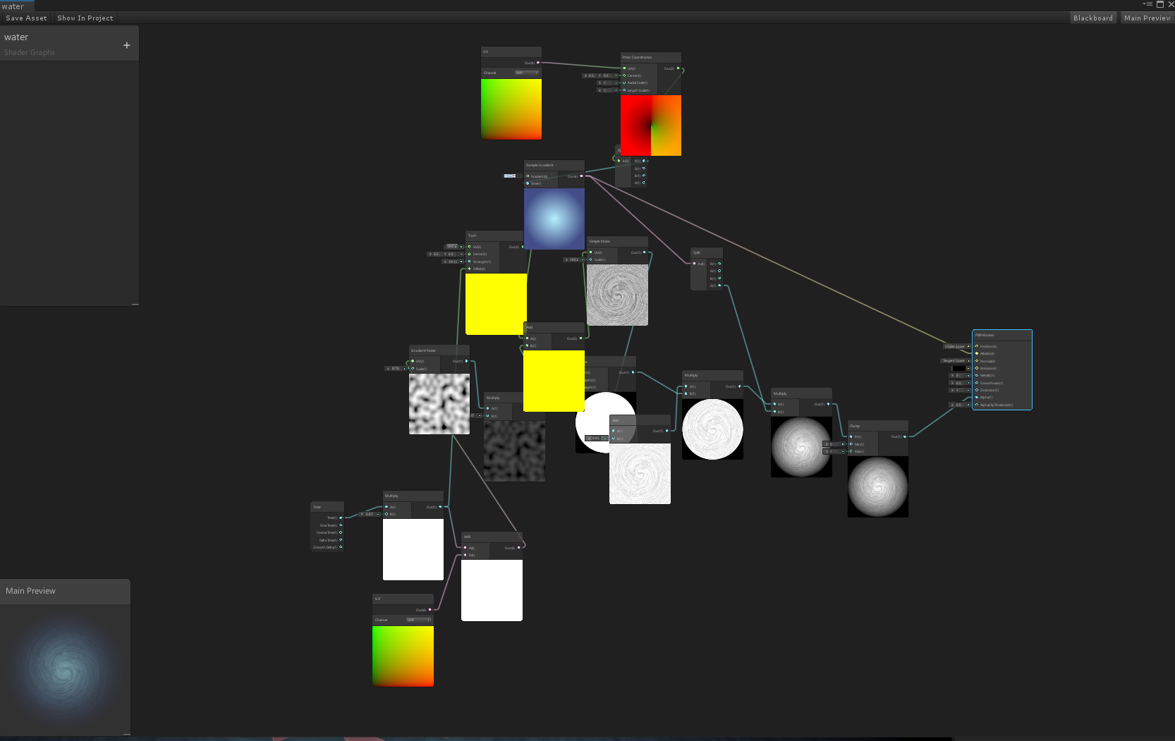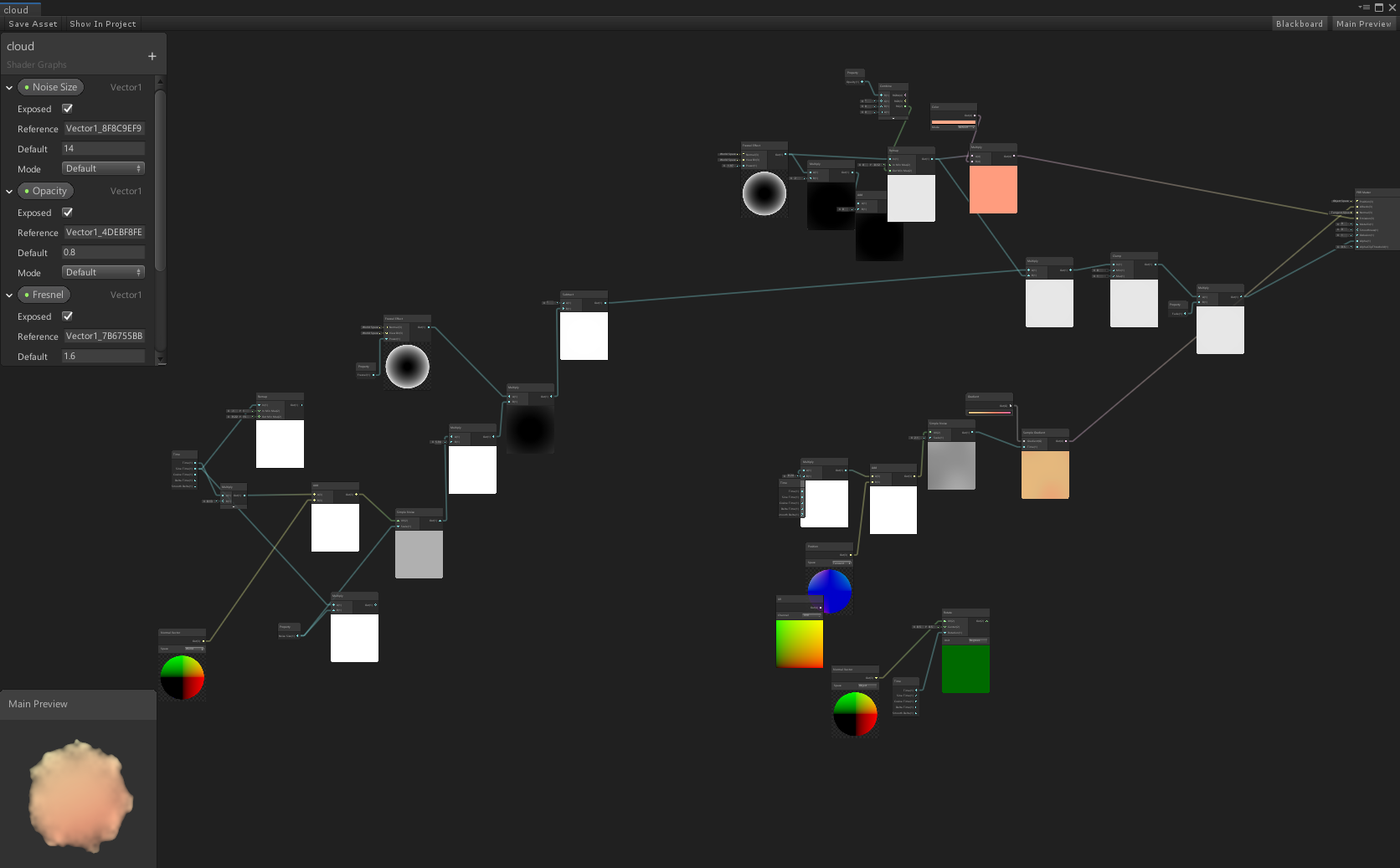 Referencing concept art from my teammate, I created appropriate shaders such as the cloud-like leaves and rippled pond. However, we decided to go with a static shader for better performance in VR.