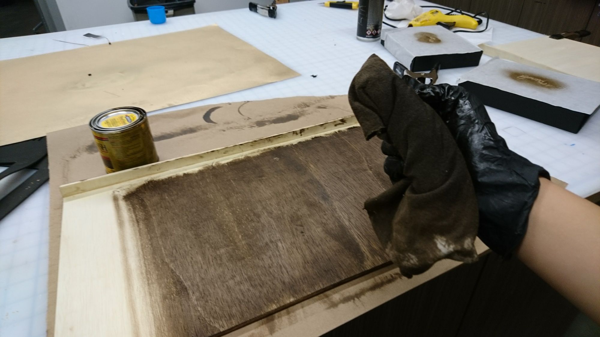 I gathered the supplies and took them to a woodworking shop on campus. After cutting the wood, I did a quick test assemble with some of my shoes.