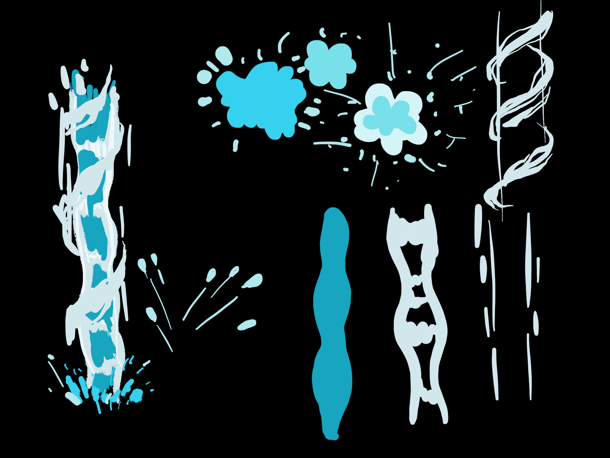 This is a rework of a water hose effect I made in an old game jam years ago. I wanted to redo it as a portfolio piece after having learnt a lot more about VFX. I made a sketch of the elements that would go into the water stream.
