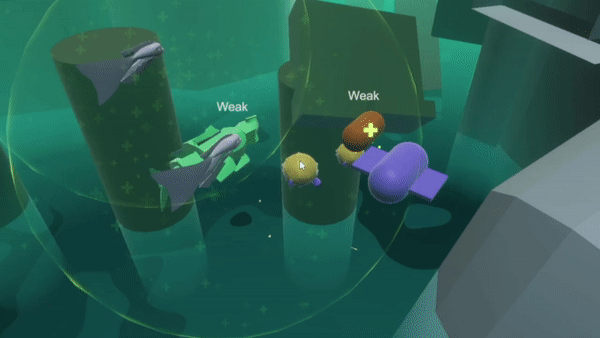 We needed a way to clearly show which fish are affected by the healing aura, while obstructing the player's view as little as possible. It is important for the player to know what fish they are healing.